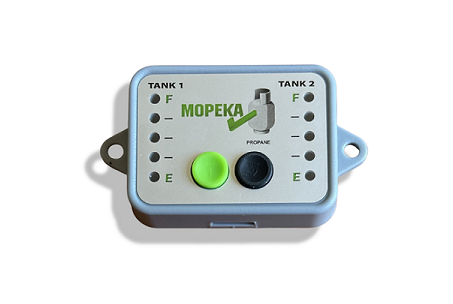 For those who are not smart device users, the Mopeka Check LED Display works with two Mopeka Check sensors (Pro or Standard), and allows you to monitor the levels in two separate propane cylinders. Programmable for 20, 30, 40, and 100 lb cylinders. Each side is independent and thus may be programmed for different sizes.Power: CR2032 Battery